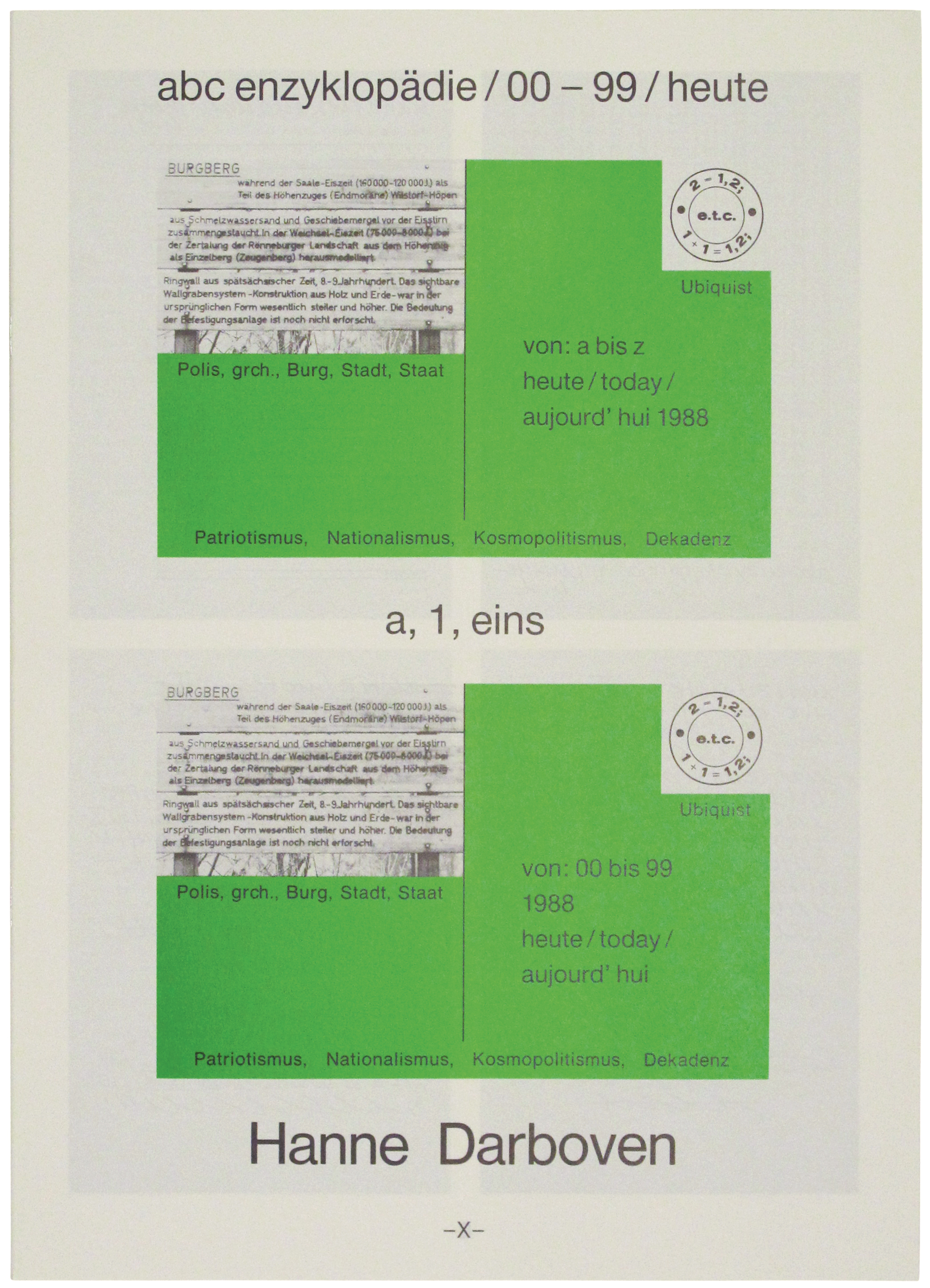 [Ref: Bippus & Westheider - Hanne Darboven. Kommentiertes Werkverzeichnis der Bücher, no. 31, p. 90].