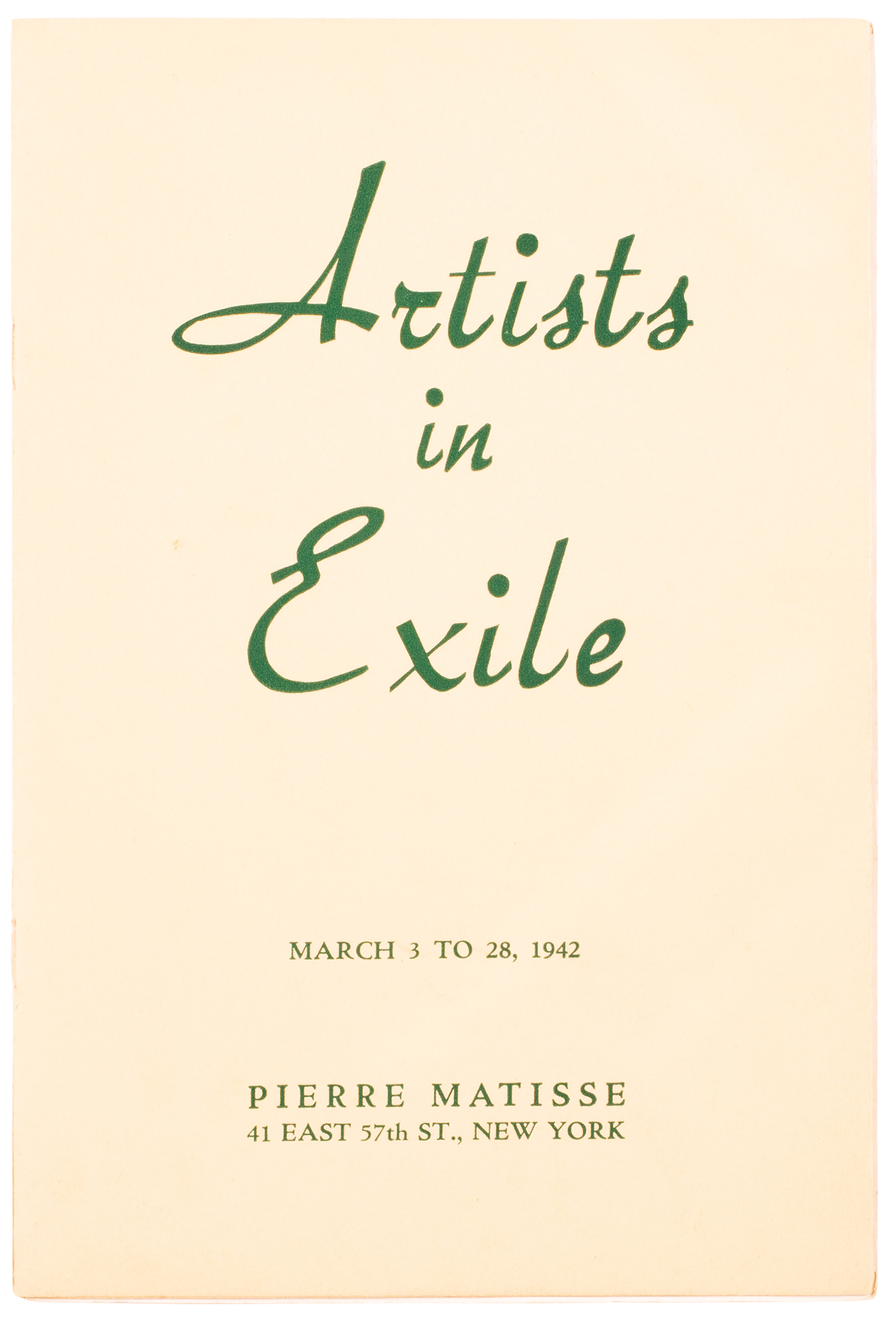 The exhibition - perhaps an unlikely one given the range of participants and their differing outlooks, temperaments and sympathies - was held at Pierre Matisse, 41 East 57th Street, New York from 3rd - 28th March, 1942; each of the artists contributed one work undertaken after their arrival in the US, those by Masson and Lipchitz were courtesy of the Buchholz Gallery.