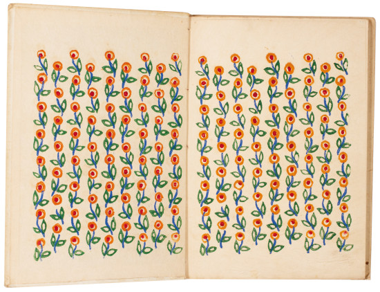 [37 leaves: 21 doubled leaves of papier antique, 16 leaves of Chine]. Small 4to. (260 x 192 mm). Leaf with vignette recto, leaf with half-title recto, leaf with title in red and green with colour floral motif recto and justification verso, 16 leaves with printed text verso to face leaf with illustration,inserted leaf of Chine with matching illustration in colour interposed between text and illustration, final leaf with achevé d'imprimer with the vignette of 'Imagerie de Watermael' dated 'Avril 1918'; text and illustration on doubled leaves stitched in the Japanese manner printed in sepia from original wood blocks (for the text) or original linoleum cuts (for the illustration) by Tijtgat throughout, inserted leaves of Chine with the illustrations in colour. Stitched as issued in original publisher's white printed paper boards with colour titles and vignettes by Tijtgat to front and rear boards, repeated colour floral motif to spine, printed endpapers with repeated colour floral motif.