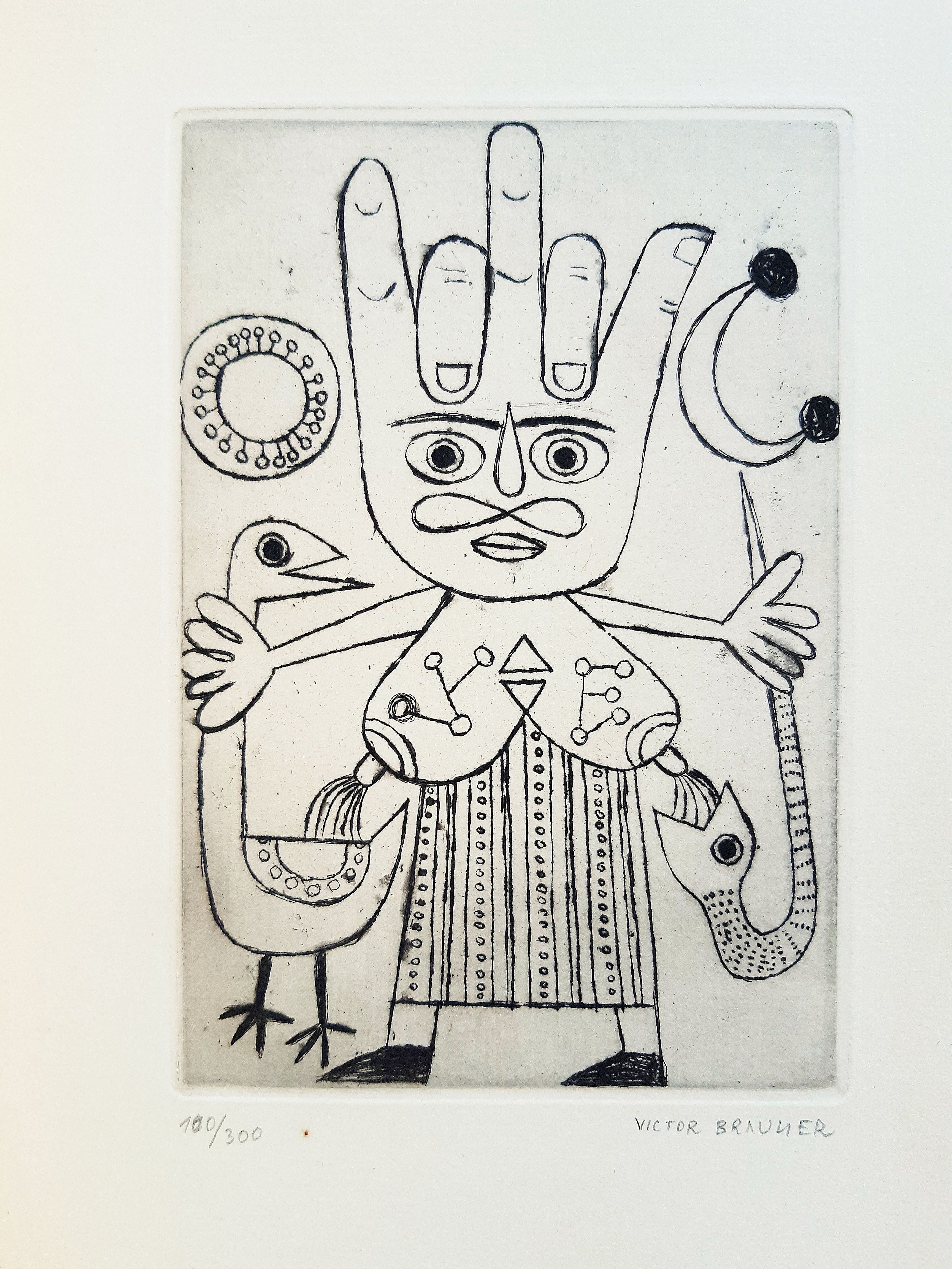 ' ... certains exemplaires comprennent seulement deux ou une seule signature de lartiste ... de cette édition il n'y a eu qu'environ 150 exemplaires terminés avec les trois gravures signées par Brauner.' (Michael Ilk).