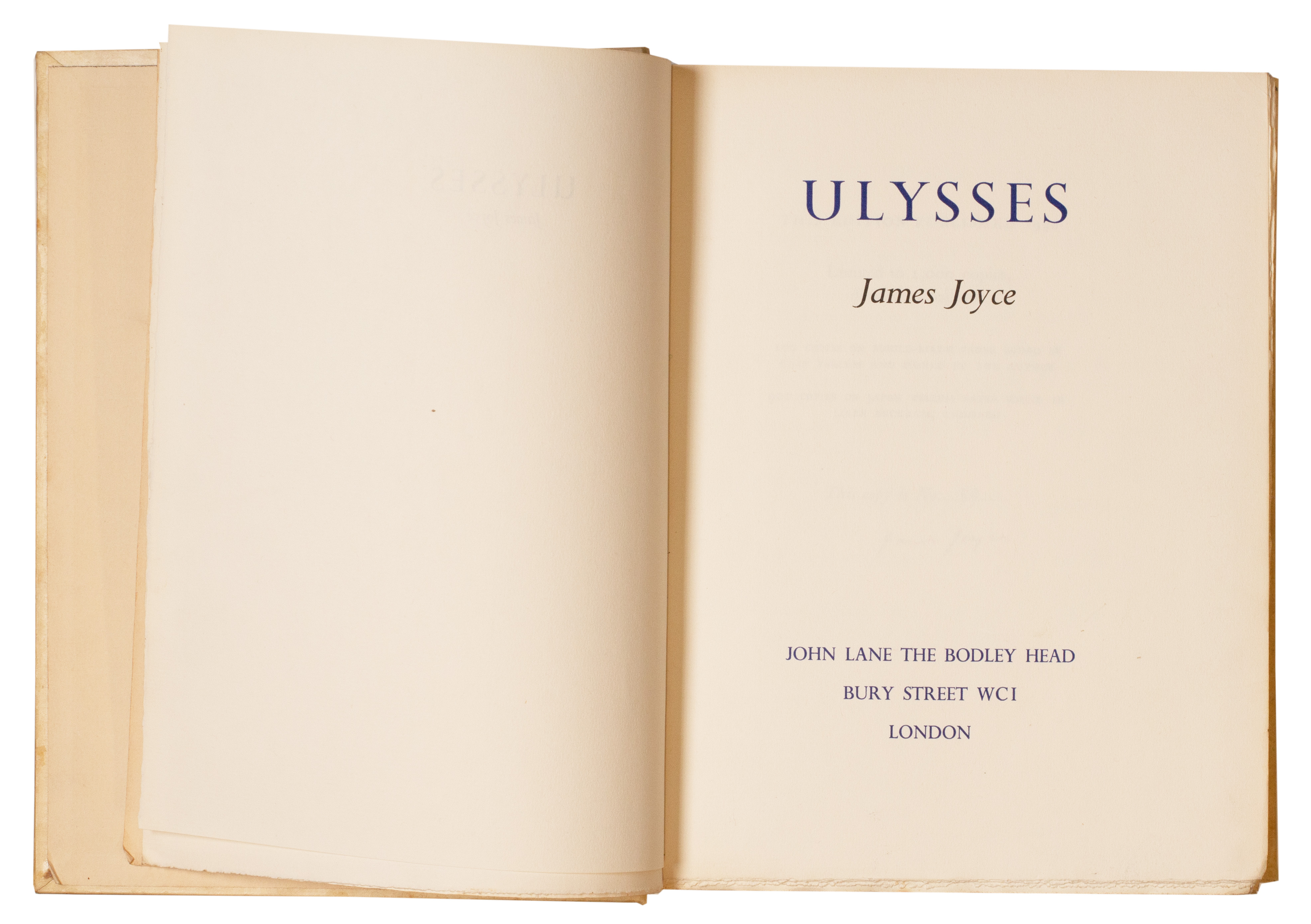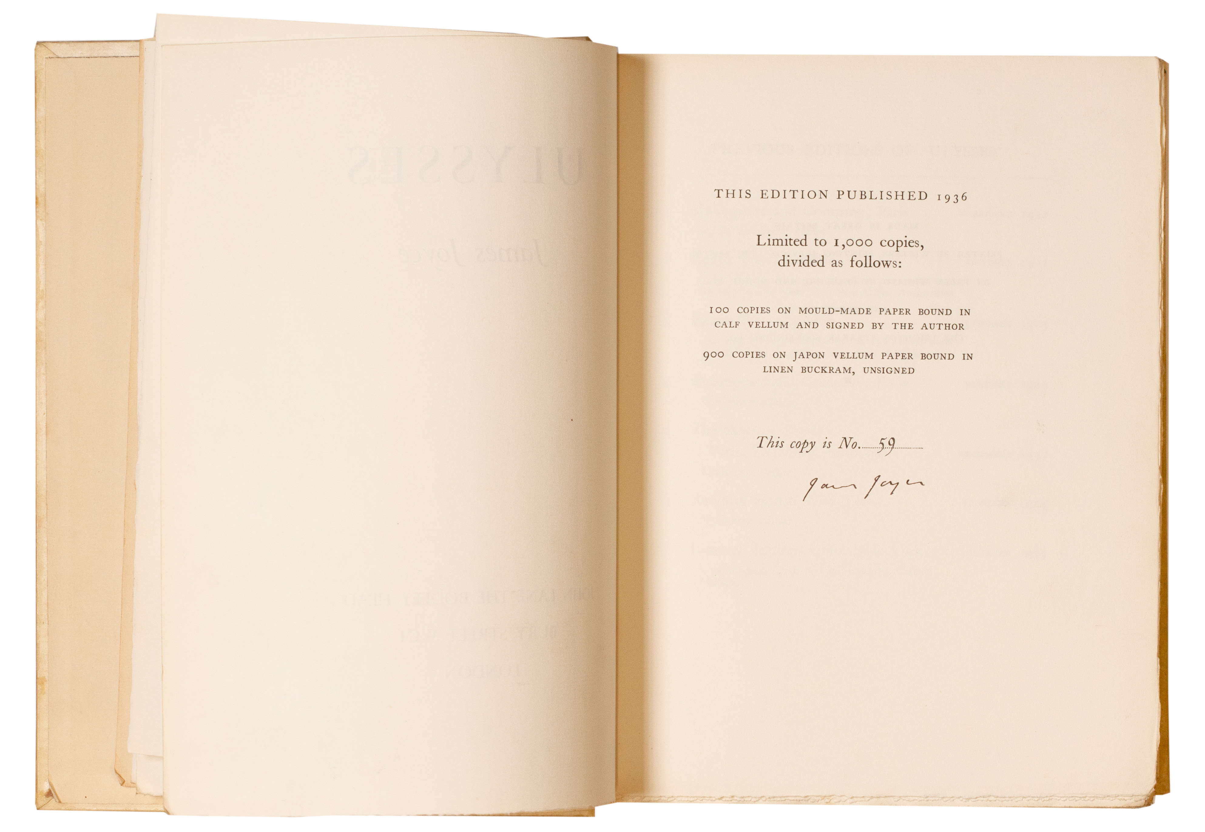 The deluxe issue of the first edition of Joyce's magnum opus to be printed in Great Britain.