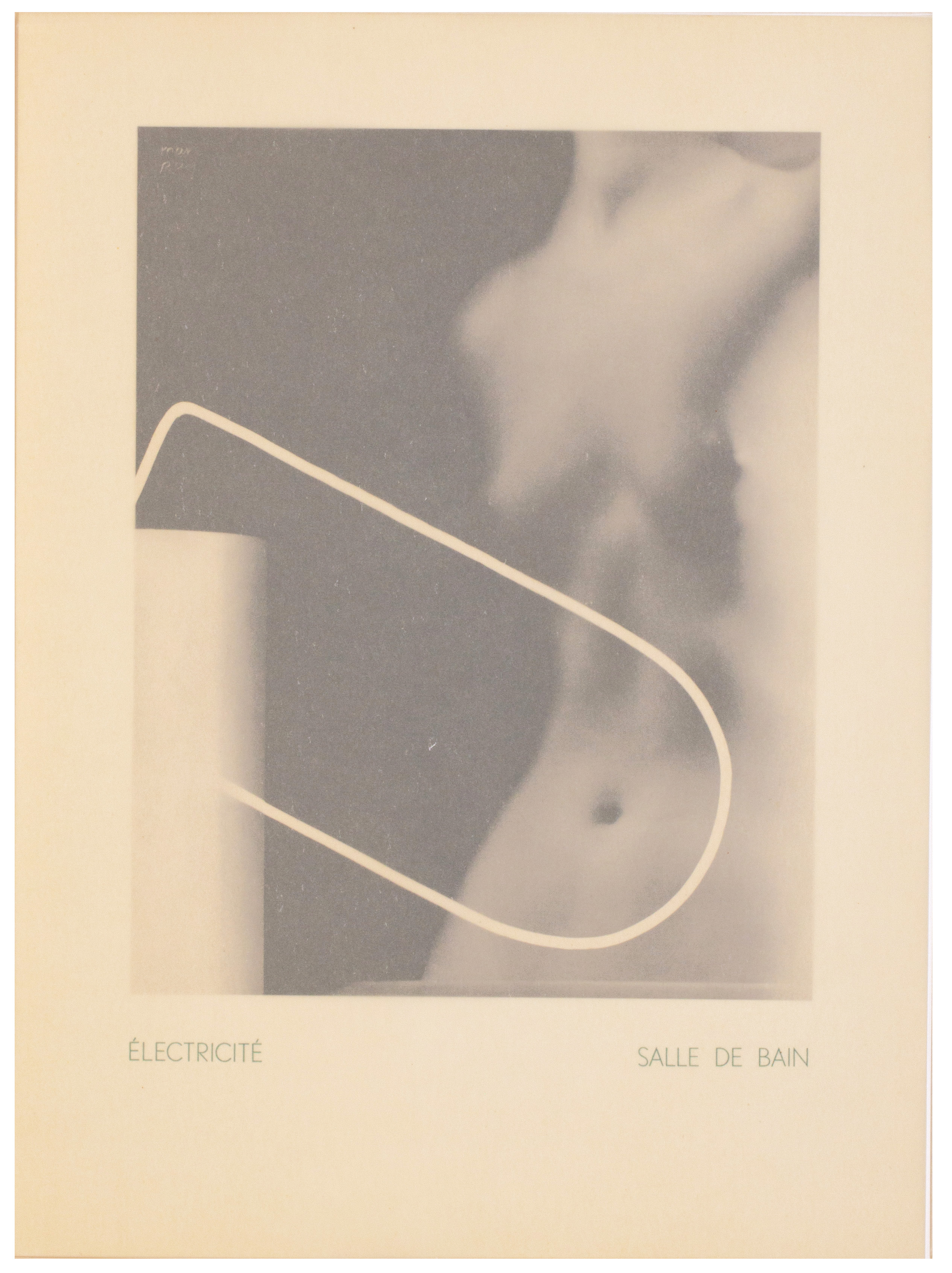 'The most lasting testament to Miller and Man Ray's work together is undoubtedly the portfolio 'Electricité', which was commissioned by the Compagnie parisienne de distribution d'électricité (CPDE), a private company that launched an advertising campaign (including films, posters, ads, brochures, and a magazine) beginning in 1928 to promote domestic consumption of electricity ...The finished portfolio, which combined rayographs, solarizations, and composite photographs ... was one of the last significant early twentieth-century works produced in photogravure, a time-consuming process of photomechanical reproduction by which photographs are etched into copper plates and printed in ink.' (Stephanie d'Alessandro and Stephen C. Pinson).