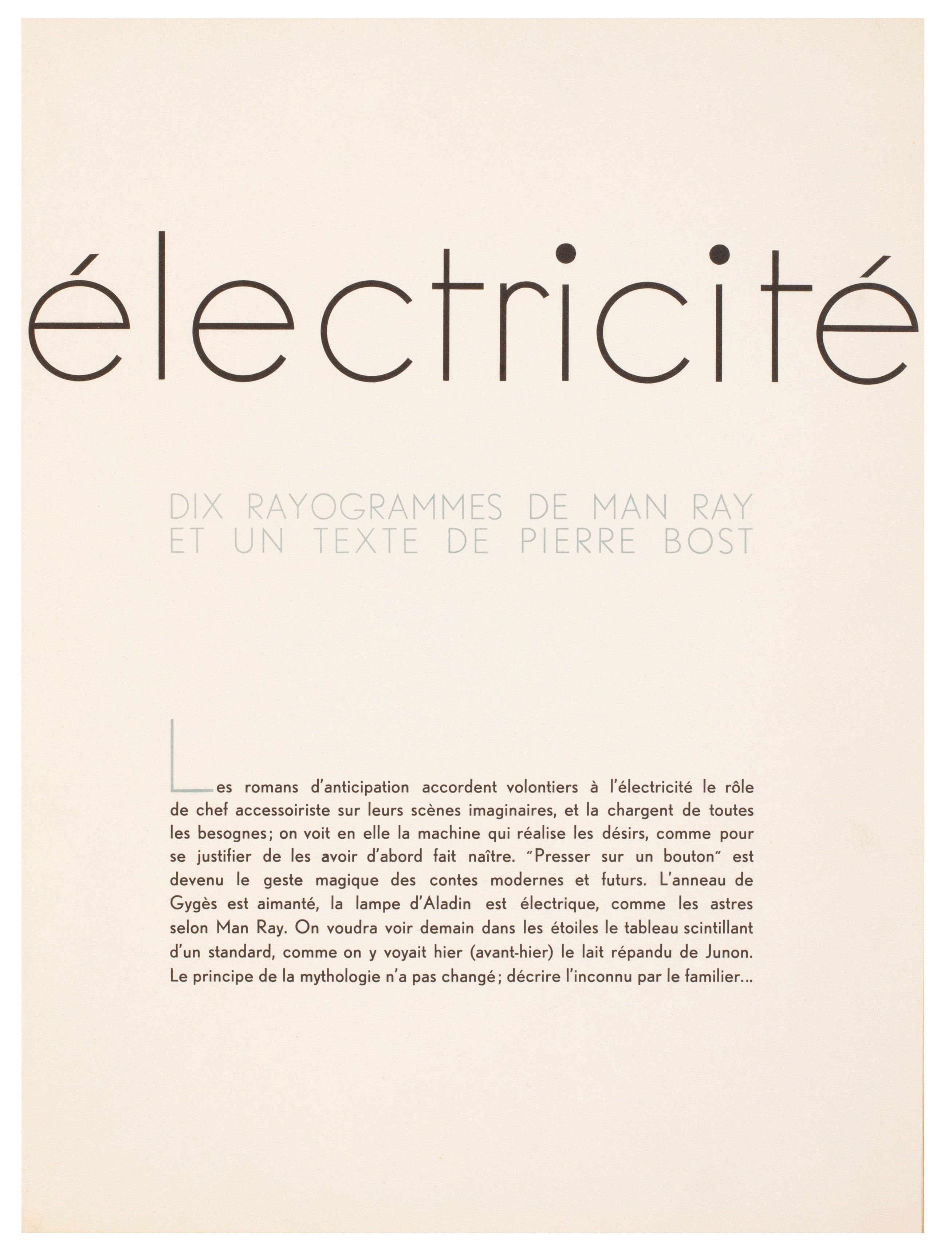 Électricité. Dix Rayogrammes de Man Ray et un Texte de Pierre Bost