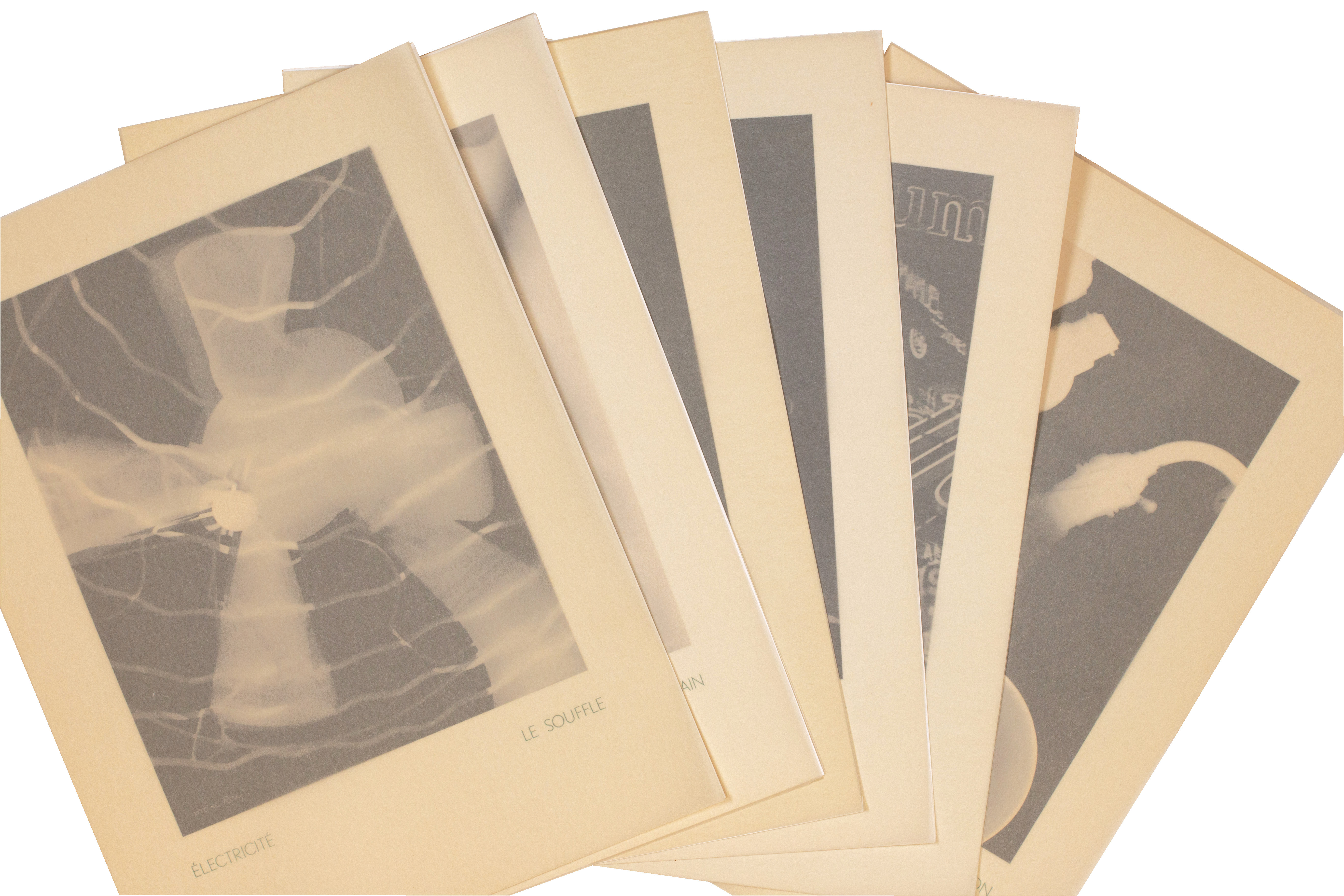 This work was commissioned by a French electric company (La Compagnie Parisienne de Distribution d'Électricité) to promote and publicise the use of electricity. The portfolio consists of 10 photogravures made from Man Ray's original rayograms; each rayogram makes use of some electrical device in the home. The conception is brilliant and the images among the most direct and uncontrived in Man Ray's oeuvre. 'Electricité' is also notable as Man Ray's last intensive investigation of the rayogram process.