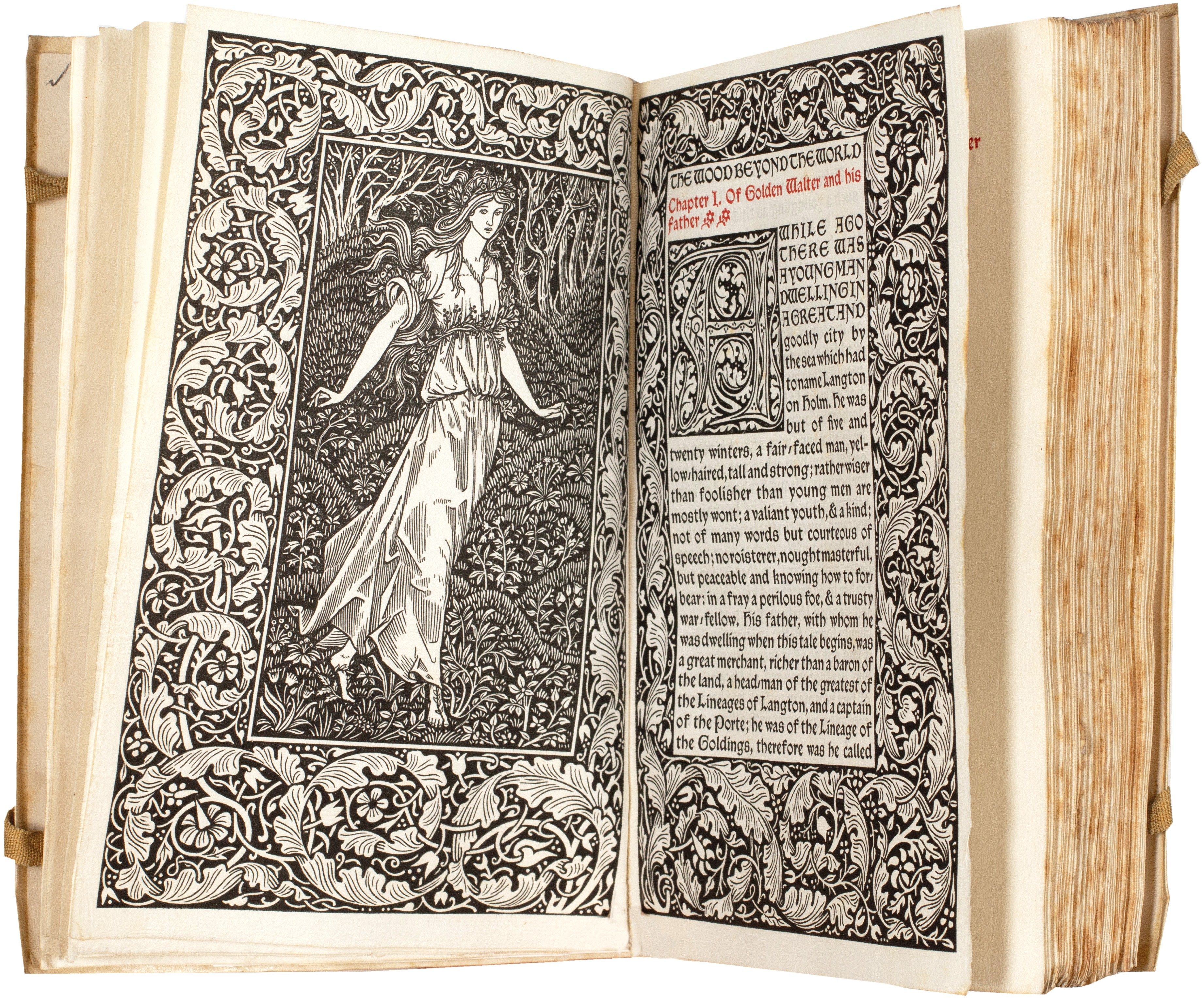 'The Wood Beyond the World was written by Morris specifically for the Kelmscott Press. The borders in this book, as well as the ten half-borders, are here used for the first time ... '. (Peterson).